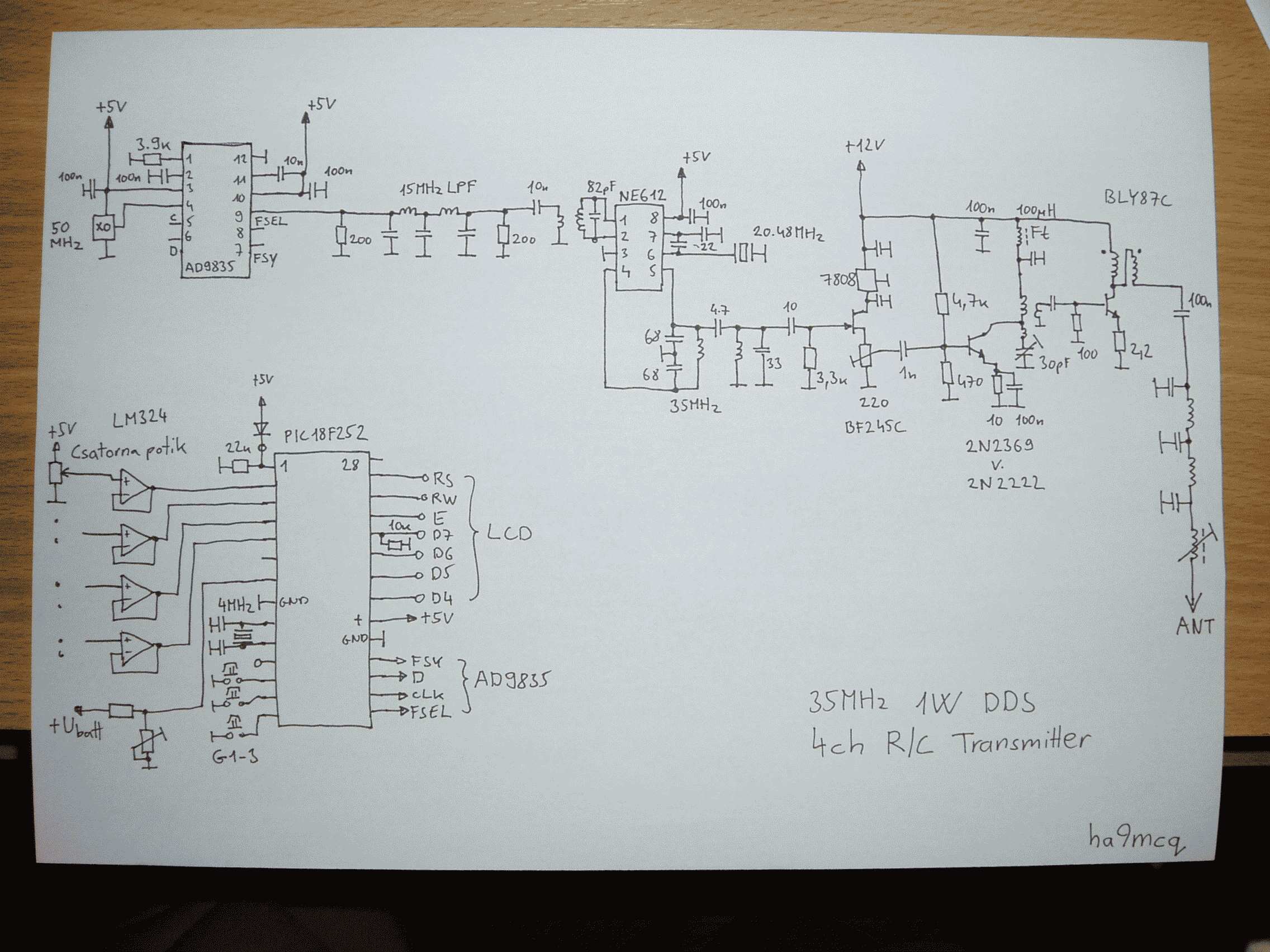 Ennek az adónak a hiányzó adatait valaki el tudná nekem küldeni??? Fontos lenne nagyon. Vagy egy másik 4 csatornás adó kapcsolást tudna-e valaki küldeni nekem. Olyat ami nem hiányos adatokkal van. Ha lehet akkor a hatótávja 100m vagy a feletti legyen. Nem akarok egyet készen venni hanem az adót építeni akarom. ha kissebb a hatótávja az is jó lenne nekem. Előrei is köszi mindent