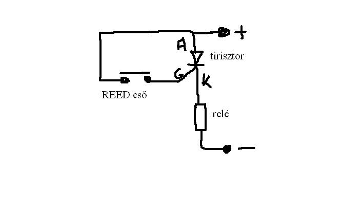 tettem fel egy paintos rajzot. Nagyjából ennyi lenne. Ha a tápfeszt ráadod akkor élesíted, és amikor a reed cső előtt elhalad a mágnes ad egy impulzust a tirisztornak és az begyújt. Ameddig van tápfesz a tirisztor igy marad és behuzva tartja a relét.