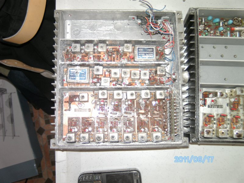 Itt lenne a 3 masina. Az átalakítottban van relé és egy tuchel dugó. A végfokon nem látszik semmi gányolás. Lehet, hogy az eredeti nagyon széles, vagy csak egy kicsit kell mozdítani a kondikon, a sokszorozók viszont határozottan állítva vannak.