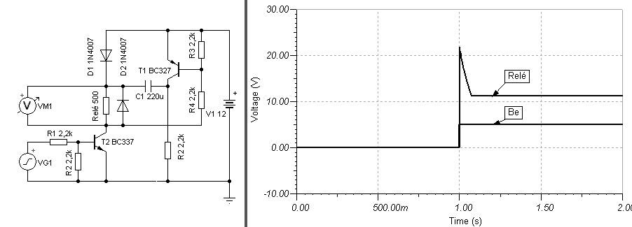 Hello! A megoldás abban rejlik, hogy a relé behúzó árama magasabb, mint a tartóárama. Vagy is ha már egyszer behúzott, kisebb árammal/feszültséggel, is behúzva tartható. Vagy is bekapcsoláskor a tápfeszültséget egy pillanatra kb. a kétszeresére növeljük. Ezt az energiát, egy kondiban tároljuk. Természetesen a relé bekapcsolása nem eshet egy időbe a tápfesz megjelenésével, mert a kondinak idő kell a feltöltődéséhez. De mint az ábrán látható, 1sec idő már elegendő. Mivel nem írtad a relé típusát, ellenállását, behúzóáramát, csak saccolni lehet a kondi értékét. Természetesen a T2 kapcsolótranyó helyett, akár kapcsolót is alkalmazhatunk a relé kapcsolására. üdv!