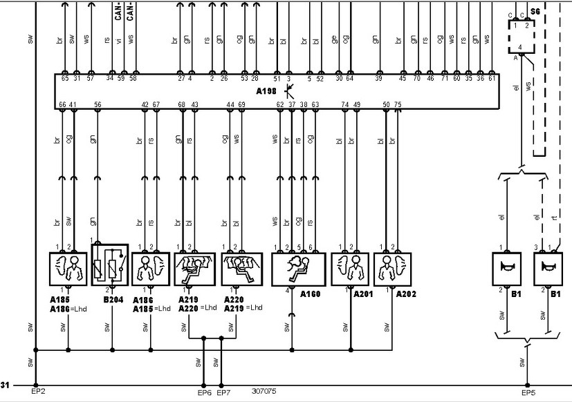 Szia! Annyit tudok mondani, hogy a fekete szál az a negatív (test), a kék és barna szálak azok egy-egy légzsákhoz tartoznak. Ezeket a szálakat csak az utasbiztonsági rendszer (modul) csatlakozótól lehetne kimérni, hogy melyik melyikhez tartozik. Ha gondolod csinálhatok róla képet de sokat kellene beleírnom, hogy a légzsákok hová tartoznak (8db).