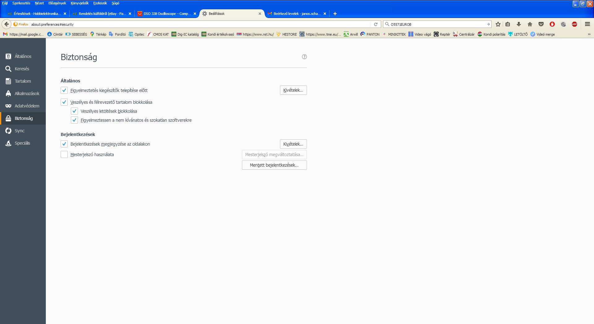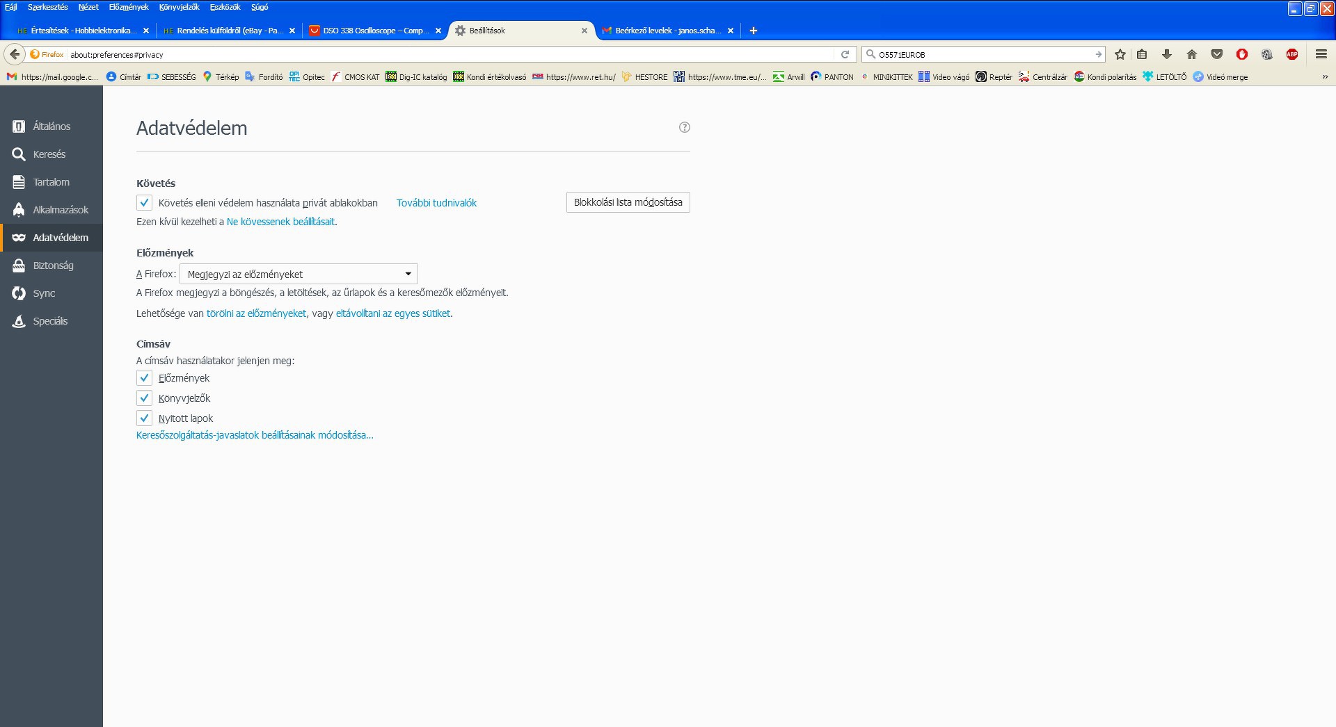 Jó, abban a régebbi firefoxban az adatvédelem külön van a biztonságól