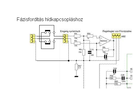 Szia! Szimmetrikus bemenetnél csak fel kell cserélni a két ágat, máris fordul a fázis és lehet hidalni