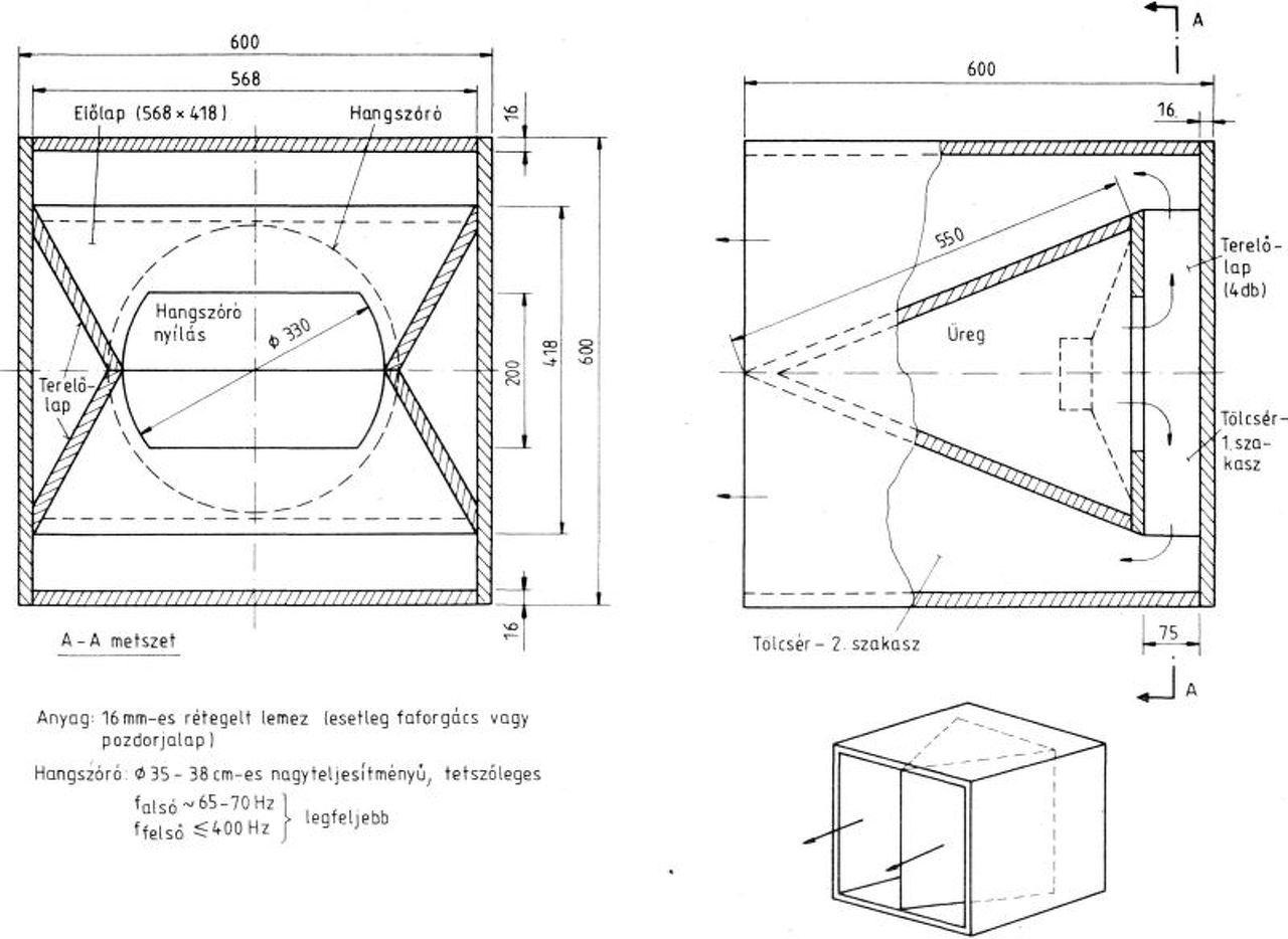 Azzal a hangszóróval 45Hz környékéig le lehet menni (ha hinni lehet a gyári adatlapnak), úgyhogy szerintem ne egy 65-70Hz -es alsó határfrekvenciájú hangszóróhoz készült tölcséres ládába tedd. Ennek a tölcséresnek inkább mélyközepe lesz, az viszont jó nagy hangerővel.