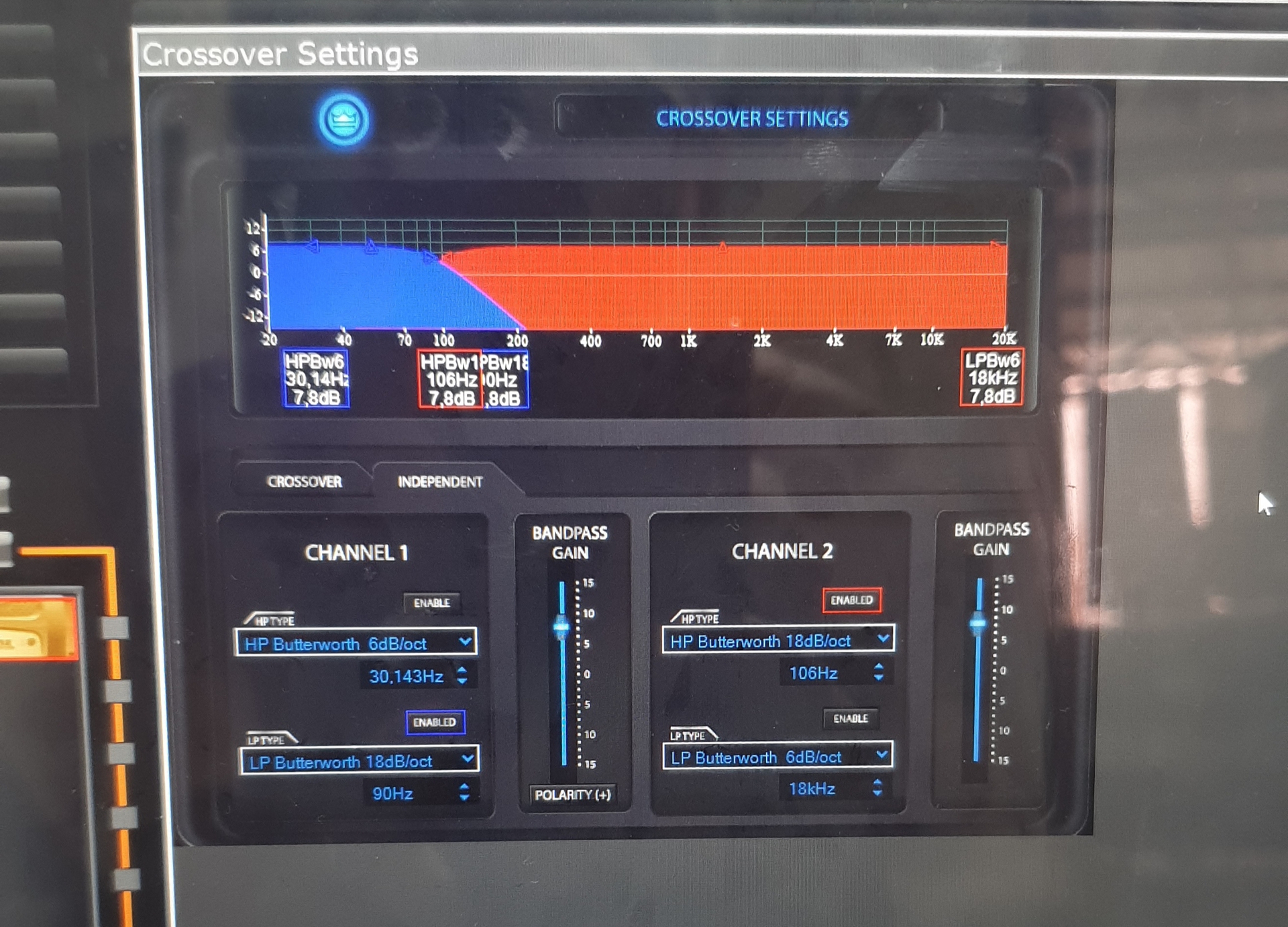 ------ A Crown XTi 2 végfokokban van "peak plus limiter" nem egészen világos a működése. Ebben tudnátok picit segíteni? A jelút végén van. Van egy képlet amit találtam, 10 x log( hangfal rms / végfok teljesítmény). Ennyi dBFS el kéne csökkenteni a threshold szintet. (hangszóró védelem céljából ha nagyobba vég telejesítménye mint a hangszóró RMS-e) (Ezt jól gondolom?) Azt megfigyeltem hogy a crossover résznél a gain értékre ráemelt a gyári preset + 10 dB t a subra. Majd a limiter szekcióban belő neki -3.46 dBFS re. Attack:0,3s, és relase 0,9s. Itt egy kérdésem lenne: Tételezzük fel, van egy keverő, aminek a max poti master állása 0 dB, tegyük fel hogy ez a poti -15dB-re van állítva és tegyük fel hogy ennyi is megy ki a keverőből a végfok bemenetére. Na most az XTi2 crossoverében a CH1 re (amin a sub fut) a gain értékre beemelek +10dB-t (mellékelt képen látni melyik gainről beszélek). Így lényegében a limiterhez a jel ekkora erősítéssel fog érekzni. És eredmény az lesz hogy a jel már eléri a limiter határértékét, és be fog avatkozni. Lényegében picit compressál tömöríti a jelet. Ha én ezt a gain értéket nem bántom, akkor az a -15dB jel fog a limiterhez érni és a keverő potijával ha -5dB re tolom, lényegében akkor leszek ott mint az első verzió esetében. Az eredmény majdnem ugyan az lesz, annyi hogy itt analog módon emelem a jel erőséget, míg az első esetben digitálisan a dsp emeli meg. Jól gondolom? Tehát lényegében ugyan akkor és ott fog beavatkozni a limiter a második esetben -5dB keverőből kimenő jel mellett , mint az első esetben. (ahol ugye a DSP erősíti fel a -15dB jelet -5dB re.) És akkor a sound is ugyan az lesz eredményben mint a két esetben igaz? - Illetve amit nem értek, betöltöttem az xti2 2002 és 4002 preseteket ugyan arra az MRX 518S ládákra. 2002 nél vágja a ládát 80Hz nél és azt hiszem 18dB/oct, és a gainre ráemel +10.1dB-t. a Peak limiter meg -3.34 dBFS-en áll. 4002 nél vágja 90 Hz nél, azt hiszem szintén 18 dB/oct al, gainre beemel +7.1 dB -t , a peak limiter meg -1.74 dBFS. Most akkor ez hogy van? akkor ez a limiter mire jó tulajdonképpen? Mert az ember azt gondolná hogy a 4002 nél jobban vissza van fogva. Elvégre egy RMS400 as ládáról beszélünk. A hozzászólás módosítva: Jún 29, 2021