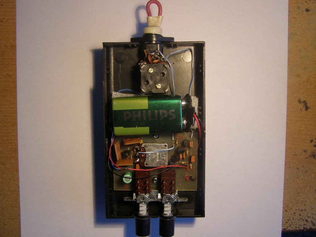 Épp valamelyik nap került a kezembe a 20 éve vásárolt és azóta is kifogástalanul működő, házi készítésű GDO-m rajza. Az oszcillátor része, a BFR91 és környező alkatrészek, légszereléssel a csatlakozó aljzat és a forgókondi közé vannak forrasztva. A többi alkatrésznek van egy kis nyák. 400kHz-200MHz-ig működik, nagyon stabil, remek kis műszer.
