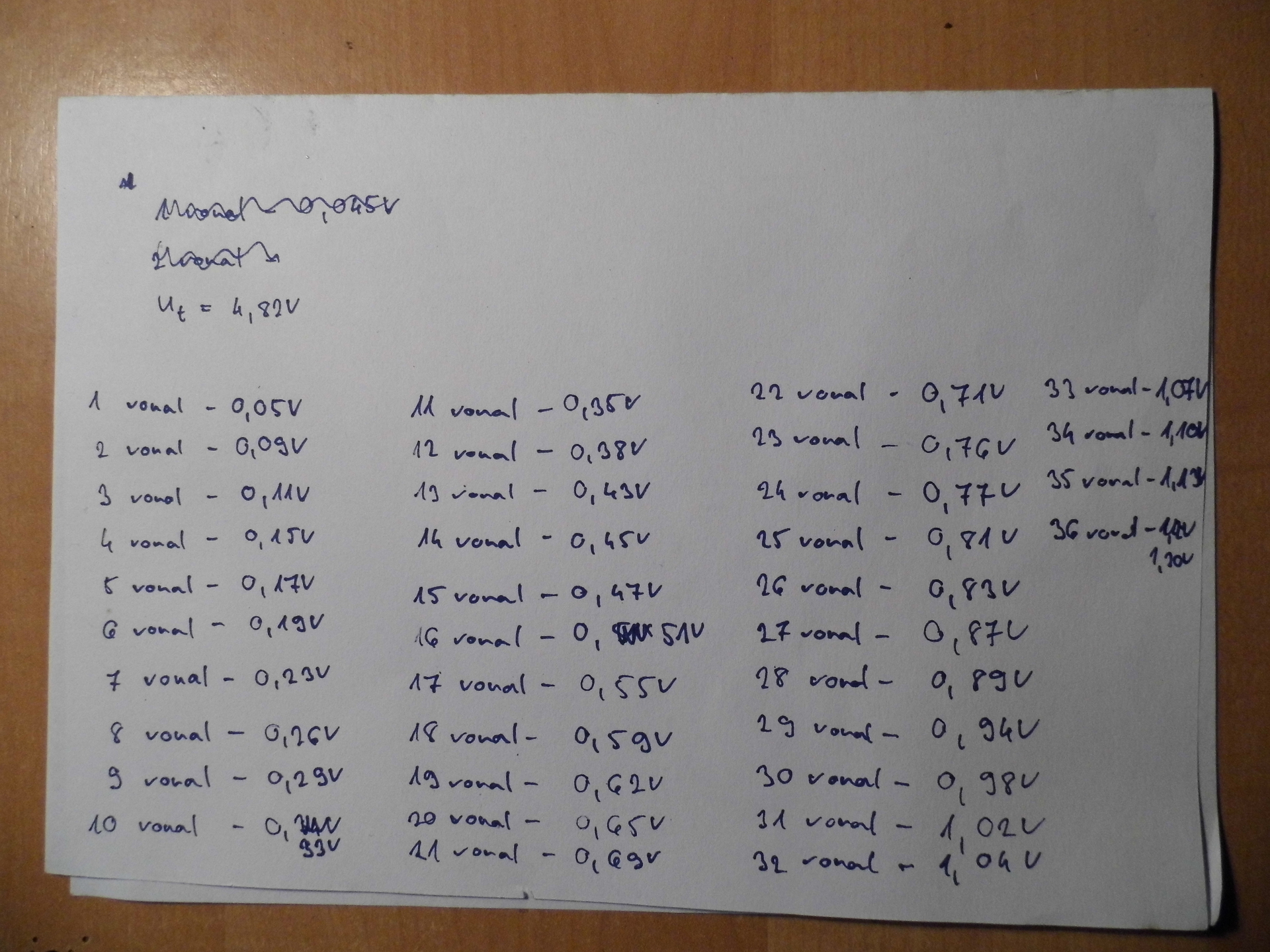 Ha az átlagot vesszük, akkor 1,20V/36 vonallal 0,033V lesz egy vonal értéke.