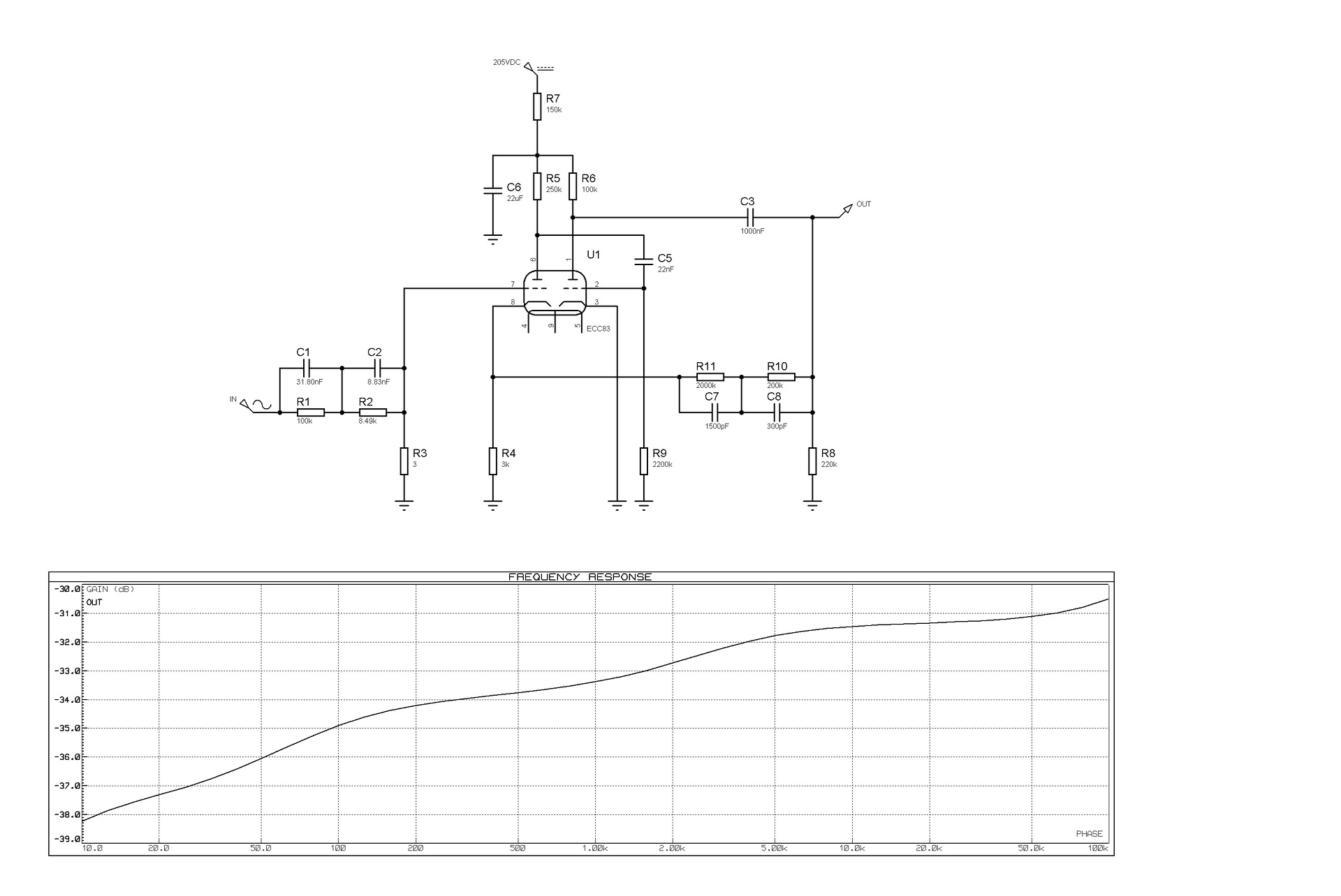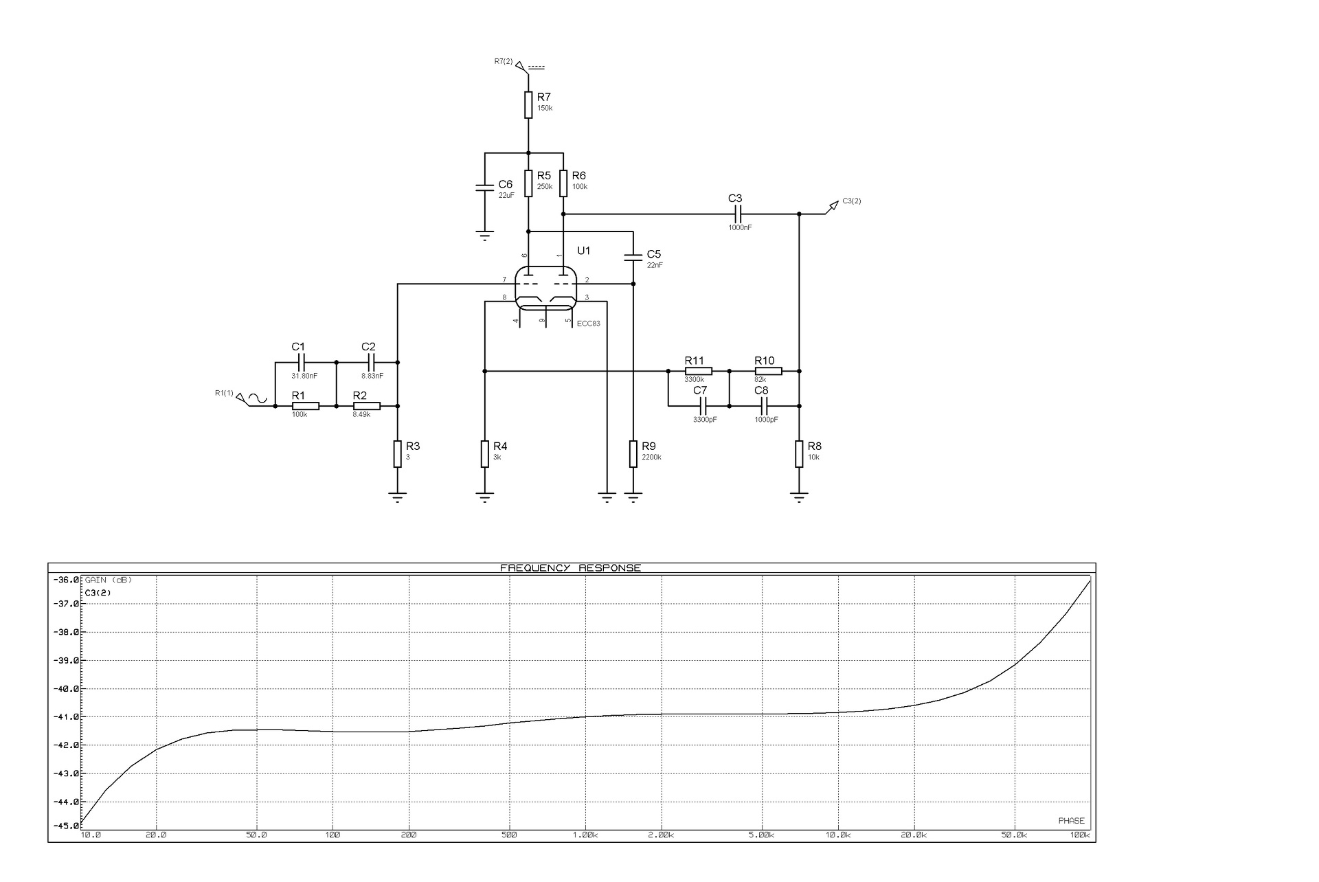 Tesztelem a csöves rádióerősítőmet, de a beépített korrektorával nem vagyok elégedett. Leszimuláltam, de az átvitele nem ideális. Nem tudom a szimuláció mennyire pontos, illetve min kellene módosítanom, hogy elfogadható legyen az átvitel. Valakinek van ötlete?