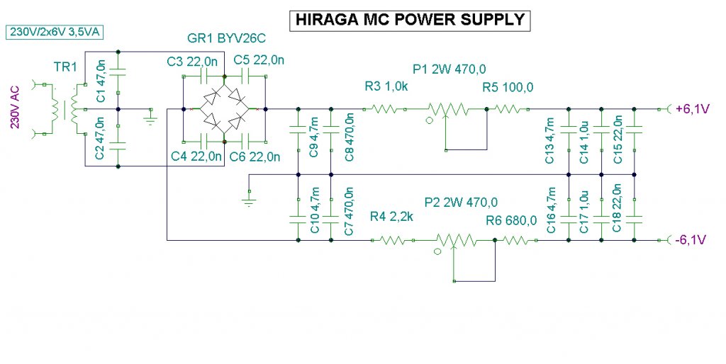 Az így kivitelezett táp nem brummos(abb) mint a korábbi LM317/337-volt, megépítettem mindkettőt hallgattam is. (A Hiraga MC-vel ez meg az én tapasztalatom...) Könnyű bármelyiket összerakni, nem költséges meg kell hallgatni őket. CHZ mester ötletét továbbra is jobbnak tartom mint az LM stabot, bár ezt még nem próbálztam...