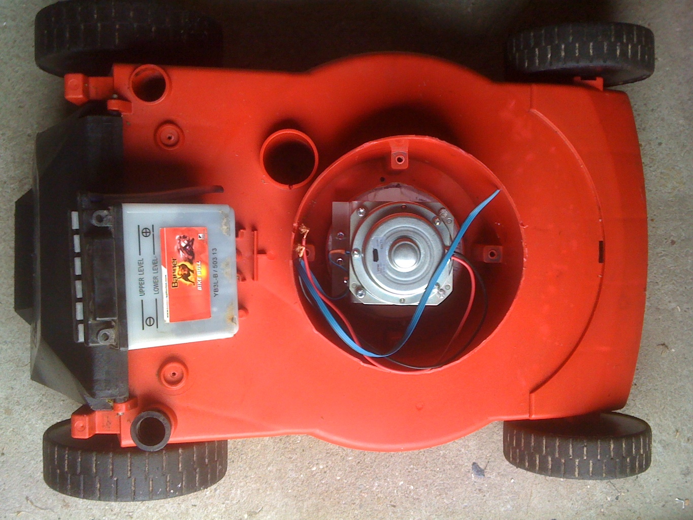 , betettem egy autó-hűtőmotort, ami gyönyörűen forgat egy kést. Apró probléma, hogy ha füvet ér, akkor szinte leáll. Azt hiszem, fog maga után húzni egy kábelt, amin majd kapja a 230-at.Köszönöm Fizikusnak a tanácsokat, de főleg az iránytűről szóló cikket. (itt a cikk) Az MSP430G2553 kontroller és HMC5883L iránytűmodul megtalálták egymást. Uli Kretzschmer hardveres UART I2C kódját és icserny (neki is nagy kösz!) UART adatküldés kódját sikerült egymáshoz ollóznom, és szépen mutatja az irányt Processingben. Bővebben: Link Tehát a gép már tud kábelt követni, égtájak alapján tájékozódni...kinek van még ötlete, hogy most már önállóan füvet is nyírjon?