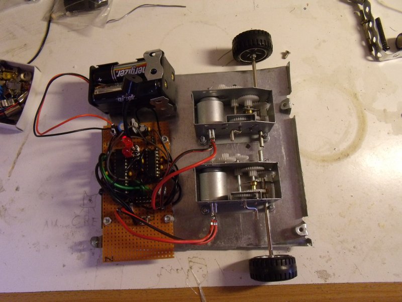 Most kovetkezik a moka resze a dolognak (minel tobbfele szenzort es erzekelot rakotni a robotra es azokat mukodesre birni...). Az alabbi oldal aljan van egy nagyon jo erzekelo vonalkoveto robotokhoz (voros LED + OP505B fototranzisztorokbol megepitve) Failurebot 5 De nehany olcso fotoellenallassal epithetsz fenykoveto robotot is... |