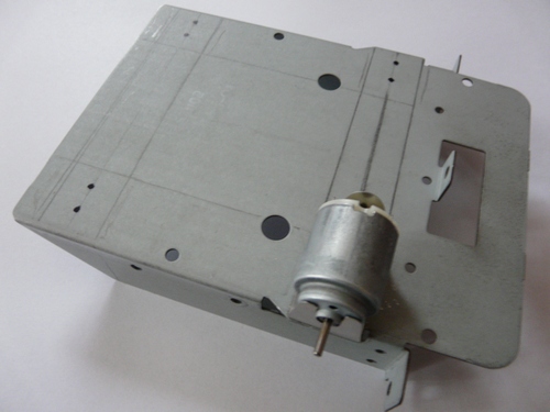 Most viszont megpróbálok abból dolgozni, amim van. A képen látható, hogy hogy fog kinézni a dolog. Az alap egy PC táp, vagy PC ház része. Kifúrkálom a motortartókkal együtt, és összecsavarozom őket. A váz oldalán is vannak lukak, az áttételt megpróbálom majd azokhoz rögzíteni. Két műanyag lego fogaskerékre gondoltam. A motoron lenne egy kicsi, a kerék tengelyén meg egy nagyobb. A kerekeket már megrendeltem, szintén hestoreból.