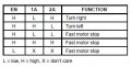 Bónusz az egészben az, hogy ha mindkét vezérlő bemenet ugyanazon a potenciálon van (tehát mindkettő ut, vagy mindkettő gnd), akkor a motor nemhogy nem forog, de fékeződik is.