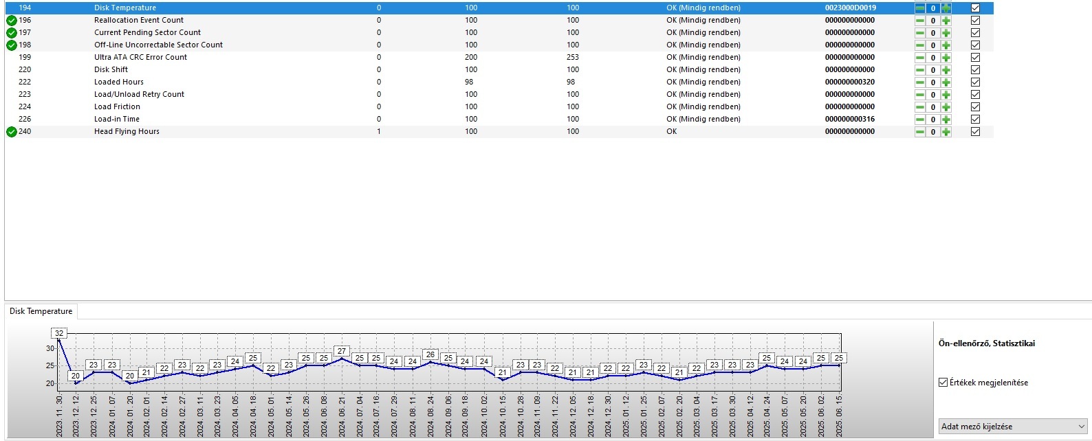 Csináltam másik két programban is az értékekről képet (DiskCheckup, Crystal Disk Info).