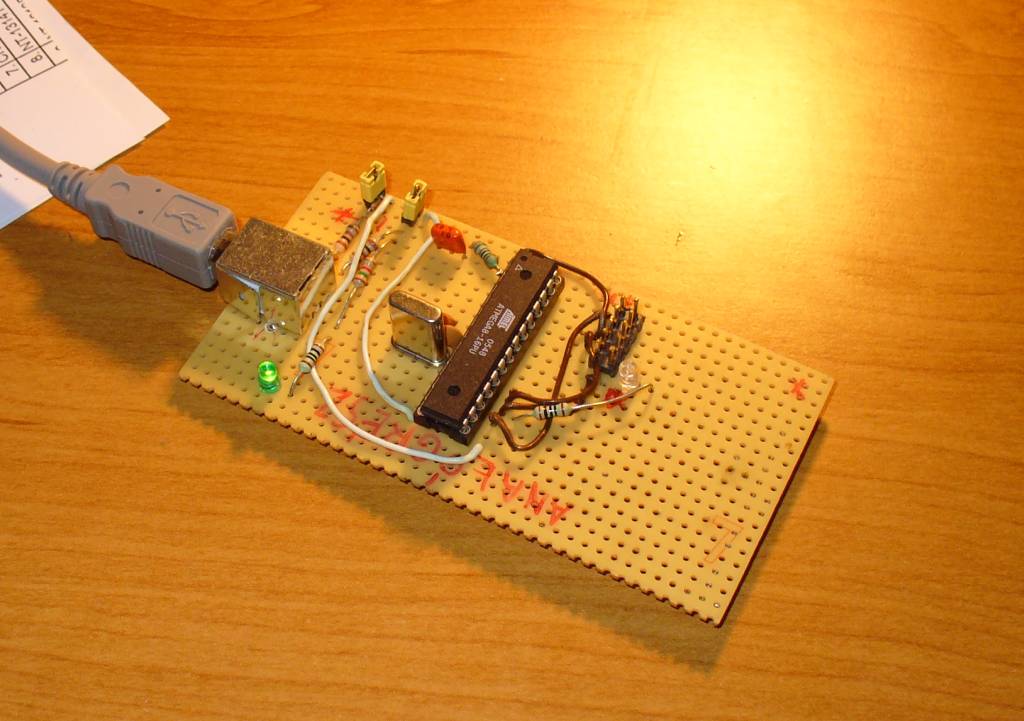 Kicsit programozgatni kell hozzá. Ez igazából egy USB-RS232 átalakító, de van benne párhuzamos kimenet is pl LED-ek kapcsolgatására. Még nem tudtam az ASM-et lefordítani, de a kész hexet beégettem atmega8-ba és működik A mellékelt minta programmal lehet kapcsolgatni a LED-et meg minden , aminek ott van a delphi forráskódja is. Csak gondoltam megosztom, hátha valaki vállalkozószelleműt érdekel Az AVRfreaks.net-en is van egy fórum róla ITT És még van egy másik project (most találtam) [link=http://www.xs4all.nl/~dicks/avr/usbtiny/index.html]http://www.xs4all.nl/~dicks/avr/usbtiny/index.html[/link]