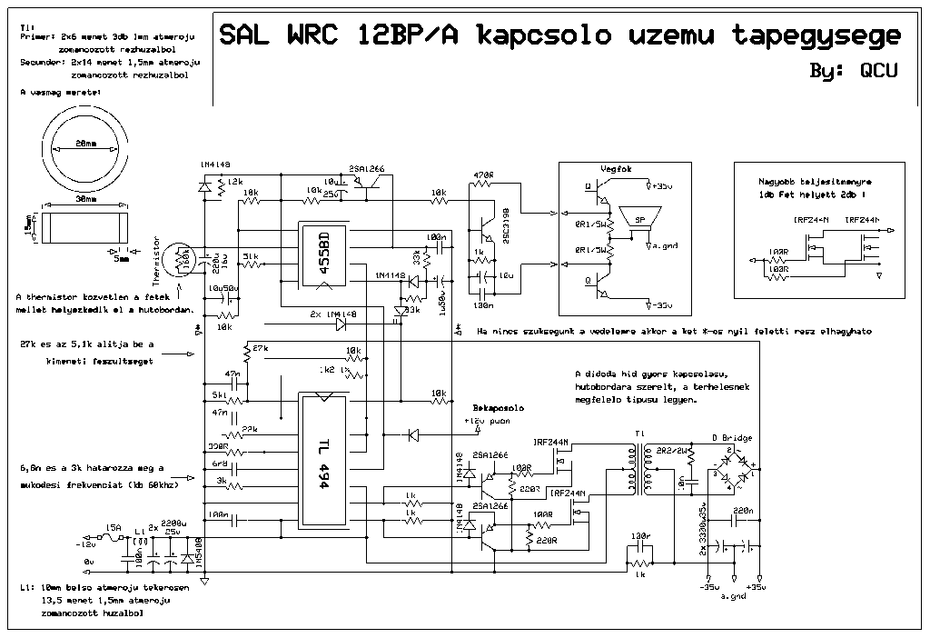 Én már tettem volna fel, de hiába csatolom, nem jeleníti meg. Még annyi lenne az előzőekhez, hogy kimértem ugyan a FET-eket, meg is vannak a hibás darabok, de be kell forrasztani az összes vég FET-et hogy zöldre válton a LED? A TL494 nem mehetett tönkre? Nem melegszik, de szerintem az is tönkre ment.