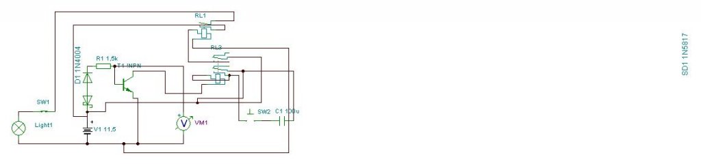 A kapcsolás logikája az amit te írtál. Amíg a feszültség nagyobb mint pl.11,5V addig meghúz a relé és mehet a terhelés alatt meg kikapcsol. Nem nagyon akartam volna nyákot csinálni az áramkörnek csak valami primitív és masszív kapcsolást. Relé van itthon szerencsére így azt nem nagyon sajnálom (főleg ilyen 20A-es 2 érintkezős).