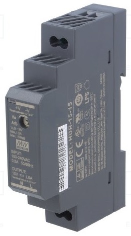Beépítettem egy Mean Well HDR-15-15 tápegységet és egy diódát is a kimenettel sorbakötve, egyéb védelem nincs. A kis tápegység bírja a rövidzárat is, tesztelve. Folyamatos kimeneti árama kb. 80 mA állandósult állapotban, 13.9 V-ot tartja az akkukat.