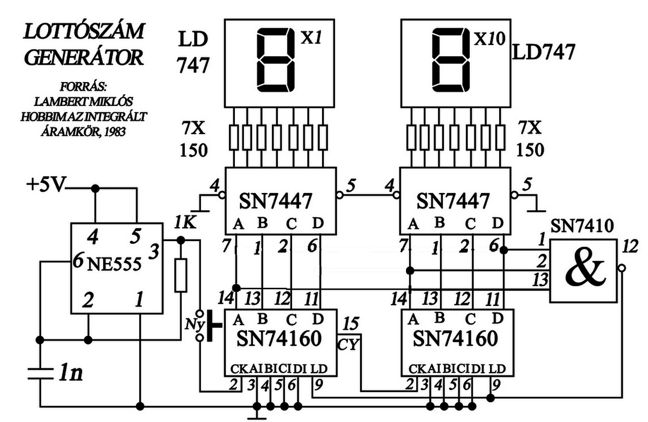 Helló az alábbi kapcsolási rajz alapján elkészített lóttógép nem 0-és 90 között generál számot hanem 2 és 99 között. Valami ötlet hogy lehetne ezt beállítani ?
