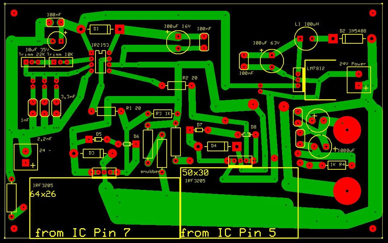 Én egy Neon Sign Transzformátort akarok építeni, mert ennek az a különlegessége, hogy a Szekunder oldalon 3000V/30mA-t tudnak. Ilyen trafók még a mikrohullámú trafók amik szintén 3000V/25-35mA-t tudnak. De mivel ezek nekem drága, ezért akarom megépíteni Flyback trafóból. Szerintem ez megvalósítható. Persze megcsinálhatnám azt is hogy fogom elmegyek egy használt kereskedőhöz megveszek egy mikrohullámú sütőt, és kibányászom belőle a trafót, de a gond az hogy az pénzbe kerül, (10 ezer és 15 ezer közötti.) De nekem van egy csomó nagyfesz trafóm (Flyback, vagyis sorkimenő legalább 8 darab) Évek folyamán kibányásztam TV-kből és monitorokból. De mivel ezek a trafók kis szekunder áramot tudnak vagyis 15-25KV/3-5mA csak ezért ezek nekem kicsi teljesítményűek. Az áramkört már megépítettem a félhidas (IR2153-as Ic-s áramkörről beszélek) nagyfesz meghajtót, először próbapanelbe építettem, de még akkor nem volt meg a szekunder oldal, csak próbaképpen elkezdtem a szekunder oldalra 5 majd 20, 40, 80, 100 menetet tekerni, és persze beállítottam a frekit. És gyönyörűen tudtam mérni a feszültséget, és frekit. De eközben rájöttem hogy 60Khz-ről ahogy jöttem le 35 majd 15Khz-re a primer oldal bazira kezdett melegedni, és sajnálatos módon megolvadt a próbapanel műanyagja. Ekkor tudtam, hogy ez így nem lesz jó kénytelen leszek beültetni nyákba, ahol már vastag combos vezető sávot tudok kivitelezni. Meg is tudom mutatni hogy hol tartok a pcb nyák panellel. Elküldöm ide az oldalra. Most ezt kiküldöm, ne hogy megint túl sok legyen a szöveg. Egyébként az Email címem: _horvath.peter@hotmail.hu Az emailem előtt az alsó aláhúzás karakter szándékos, mert csak így volt üres user név a hotmail.hu szerveren.