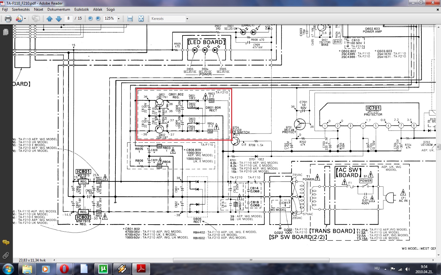 Kicsit macerás, de megoldható. A Service Manual utolsó fejezete az elektronikai alkatrészek listája. Ajánlom, hogy minél nagyobb méretben nyomtasd ki a kapcsolási rajzot, majd az alkatrészlistában a rajz alapján azonosítsd be az egyes alkatrészeket, és nézd meg, hogy jó-e mindkét erősítőhöz. Ha a két erősítőben egy adott alkatrész nem ugyanaz, akkor az alkatrészlistában zárójelben ott van utána, hogy TAF110, vagy TAF210. Így megállapíthatod, hogy mi maradhat, és mit kell cserélni és mire. Vagy, hogy időt spórolj, gyűjtsd ki a nem egyformákat, és utána keresd meg a rajzon.
