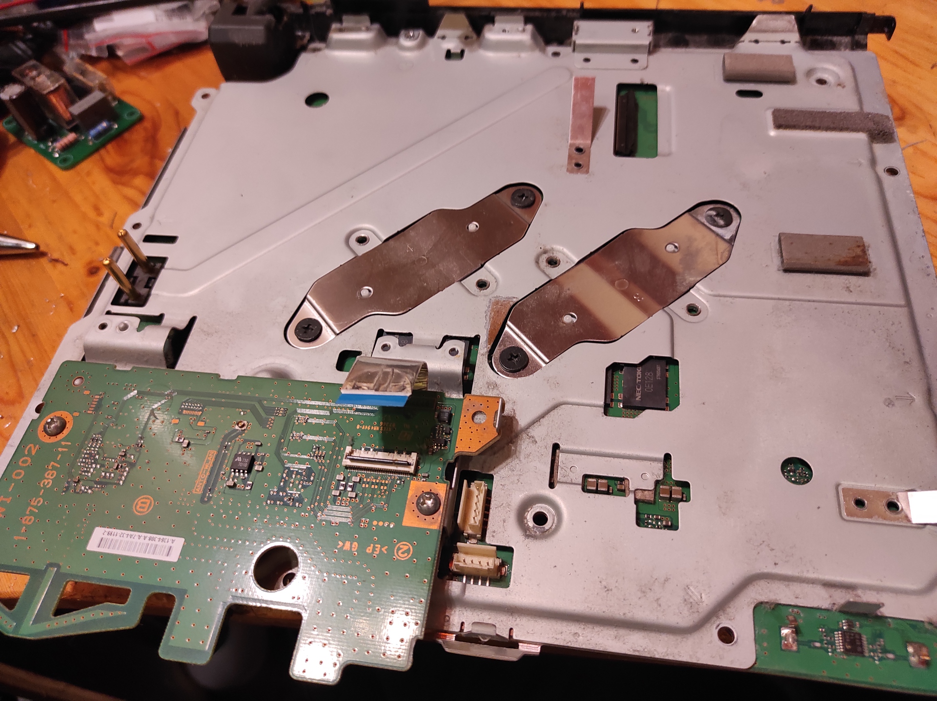 Szia. Ismét elővettem sajnos kapcsolási rajzott nem találtam Kte-001 alaplaphoz. Tristale-t gnd re húztam és nem kapcsol ki a készülék. Video resetre nem reagál még most sem , kb 10mp után 1 csipanás és visszaáll készenlétbe. Javítás nem látszik az alaplapon. Kte001 hez kellene flash kiolvasására egy alaplap forrasztási pont ábra ha van valakinek esetleg.