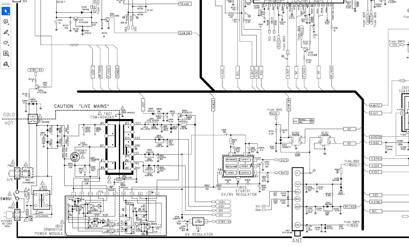 Anno a forrasztások voltak kirepedve a képcső nyakán lévő nyákon. Akkor átforrasztottam a legtöbb csúnyát a Main lapon is. Most nézem 5 éve javítottam. Most az alábbi hibát produkálta: Működés közben kikapcsolt, majd bekapcsolva nem indult még a standby LED se. Nem volt meg a standby 5V -se Végül cseréltem a Power modult I802 DPM001TIA (biztos hogy rossz volt... 14-es láb kicsit mintha feketés lenne, de lehet csak a por... ) az elvileg az OCP (meg biztonság kedvéért a Q801 K267T(2SK2671) kapcsoló FET-et is a trafó előtt.) Most már van Standby 5V és van piros led is... hurrá gondoltam. De sajnos nem indul. Power modult I802 DPM001TIA Tehát Táp alá helyezem, lemágnesező kattan. Stdby led piros ok, bekapcsolom, lemágnesező kapcsol, hallani hogy kapcsolná fel a képernyőt, és abban a pillanatban kb ki is kapcsol. Kicseréltem még az az I805 5V/8V power IC-t is (azon is látszott már az idő) De nem javult. De kicsit kifogytam az ötletekből, mert a bekapcsolás kikapcsolás olyan gyors, hogy kb mérni sem lehet semmit, milyen feszültség hiányzik. Jól jönne egy kis ötlet, mire gyanakodjak, mit mérjek.(pláne hogy? ha lenyomja magát) Köszi (van pót alkatrész szerencsére)