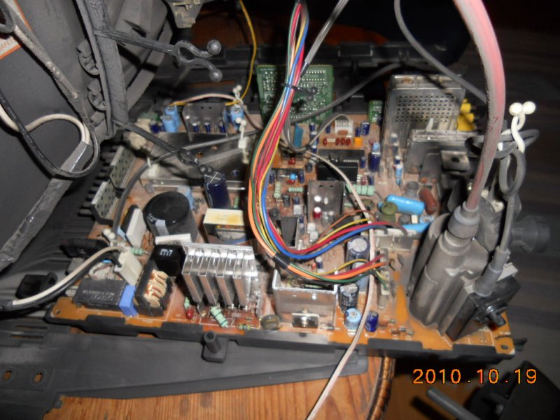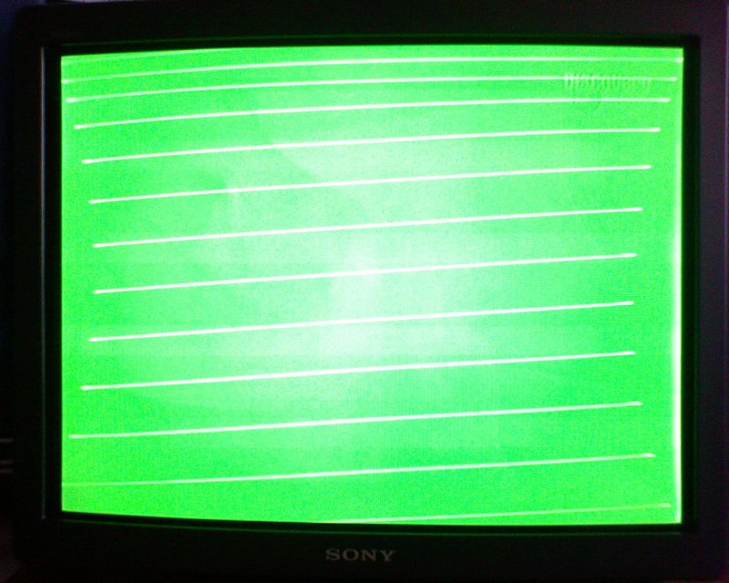 Azt szeretném kérdezni, hogy volna közöttetek oly bátor legény, aki nagyon ért a Sony TV-khez, és eljönne hozzám segíteni nekem a javításban? Van 2 db rossz TV itthon, én sajnos annyira nem értek a javításukhoz, mert egyrészt nincs műszerparkom, és nem tudom, hova üssek hogy rendben legyen a két TV. Együtt megnézhetnénk és megjavítanánk őket. Az egyik egy SONY KV-X2991D. A hibáját megpróbálom körvonalazni: A bekapcsolási kép a belinkelt képen látható. Nézegettem a Video erősítő IC-ket, mindegyik jó, tápfesz megvan, bemenetein egyforma a fesz. Ha lehúzom a képcső nyakáról a panelt akkor a kimenetein egyforma a fesz. Ha rádugom akkor a Zöld ágyún lecsökken kb 50V-ra a fesz a másik két ágyún 120V. Én arra tippelnék, hogy képcsöves, de nem tudok róla megbizonyosodni, valami képcsővizsgáló/regeneráló műszer kéne hozzá, amely nekem nincs. A másik SONY KV-X2931D, ennek egy fényesebb csík volt a kép tetején, és ott torzabb is a kép, és az egész egy kicsit a függőleges irányban össze volt ugorva. Idővel jobb lett a kép, ahogy bemelegedett a készülék. A fényesebb részen a vízszintes irányban torzul a kép, és mintha hullámos is lenne. Tegnap bekapcsolás után beindult a TV, majd kb. 5 perc használat után eldurrant benne valami azóta se-kép se hang. Meg sem mukkan.