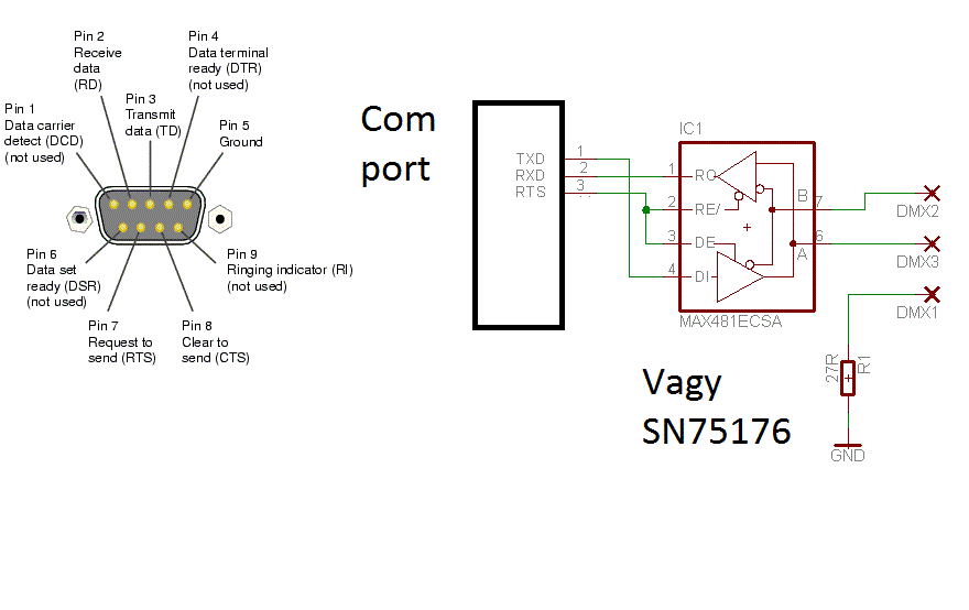 USB van rajta? Egyébként ha nincs itt egy rajz Soros portról DMX re átalakító. RD=RXD TD=TXD