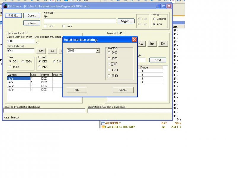Vesz természetesen csak a mezőkbe beállított darabszámú byte-ot várna, ezt be kell játszani amint már említettem...