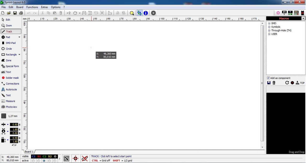 Olyan problémám lenne Sprint Layout 6.0 verziójával, hogy mikor akarok valamit kitenni a tervezői felületre (board), akkor mindig elfehéredik. De ha jól rázoommolok, akkor meg jól működik. A neten már keresgéltem, hogy mi lehet a hiba, de sehol se találtam rá megoldást. Esetleg más is találkozott már ilyen hibával? Vagy csak engem szívat a program?