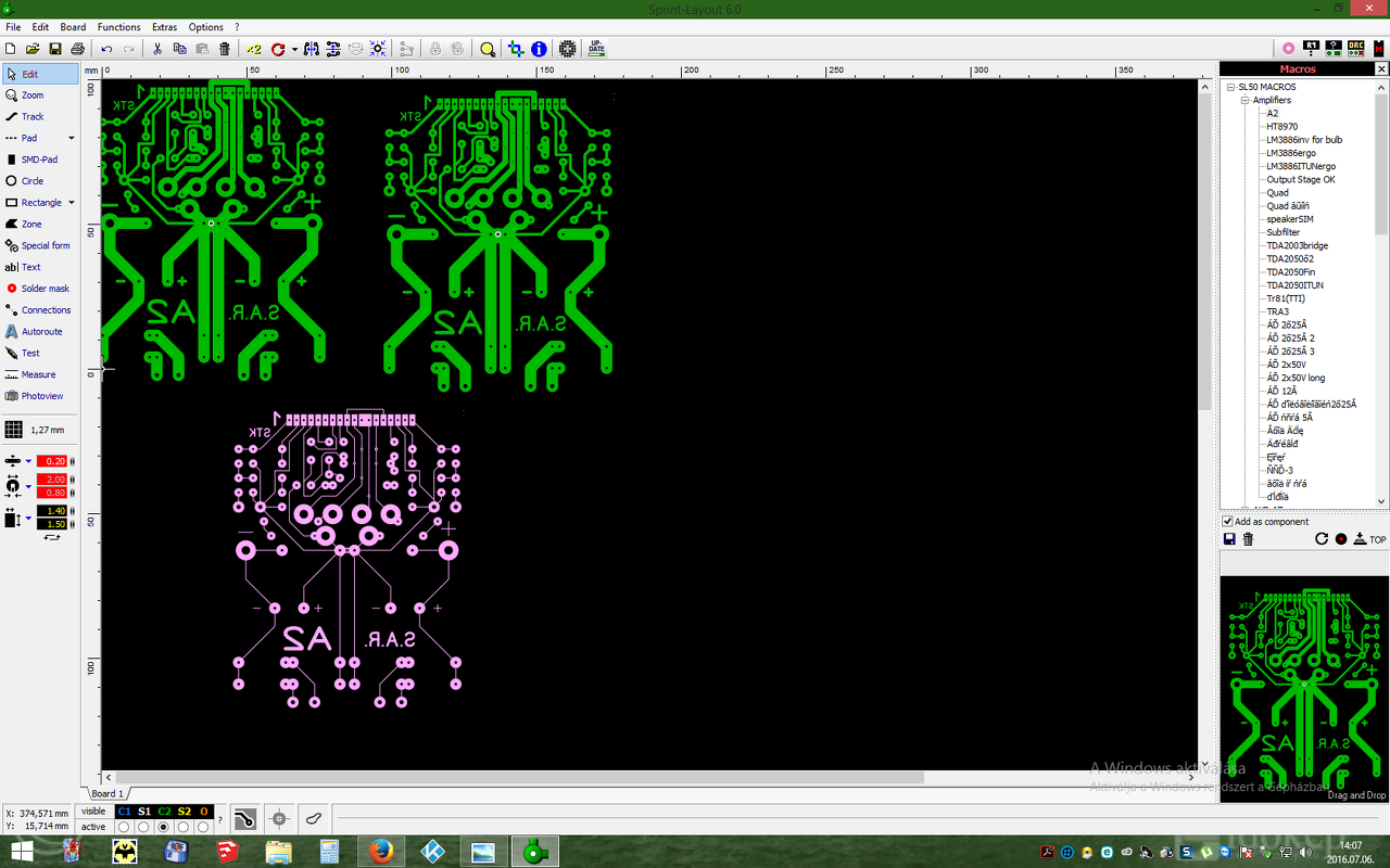 3 réteget használok: C1, S1, O, ebből nyomtatáskor csak a C1 réteget szoktam kinyomtatni.