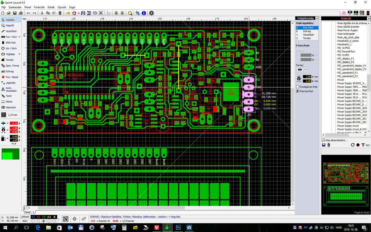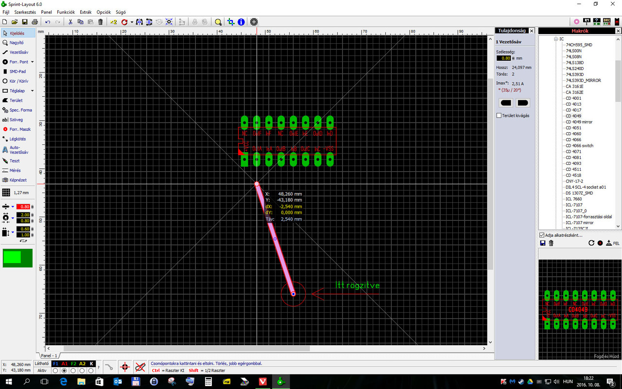 Segítségeteket szeretném kérni. Eddig ExpressPCB nyáktervezőt használtam, főleg az egyszerűsége miatt. Próbálok átállnia Layout tervezőre, de nem találok benne egy nagyon hasznos funkciót. Egy vezeték egyik végét rögzítem a másikat pedig mozgatom tetszés szerint. Érthetőség kedvéért mellékelek egy képet is: Előre is köszi a segítséget. ![]() Üdv. A hozzászólás módosítva: Okt 8, 2016