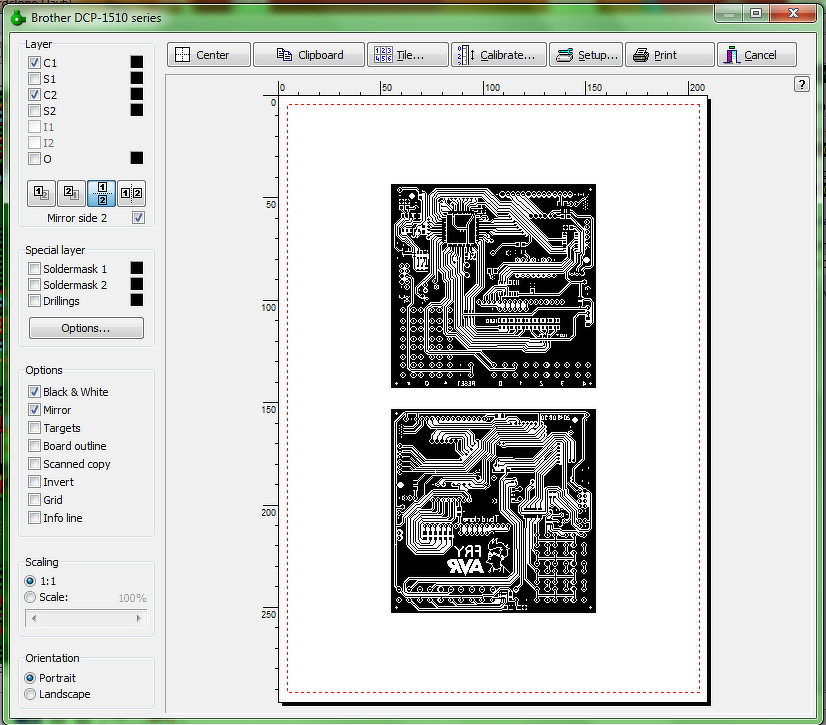 Idézet: „a nyák kb 0.4 mm-rel kisebb lett. Viszont a két oldal között semmilyen méretbeli eltérés nincs.” A programban van lehetőség a nyomtatási méretet kalibrálni.