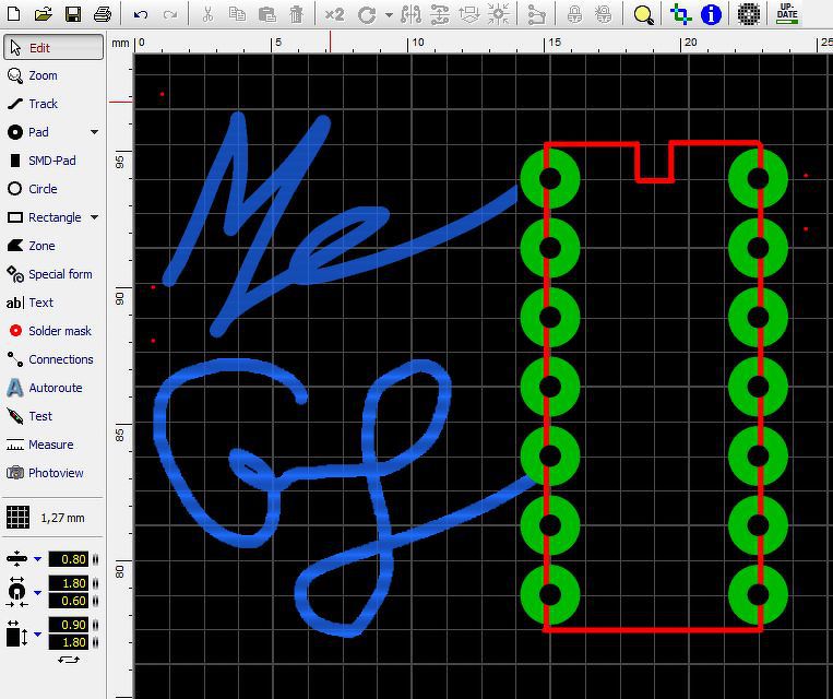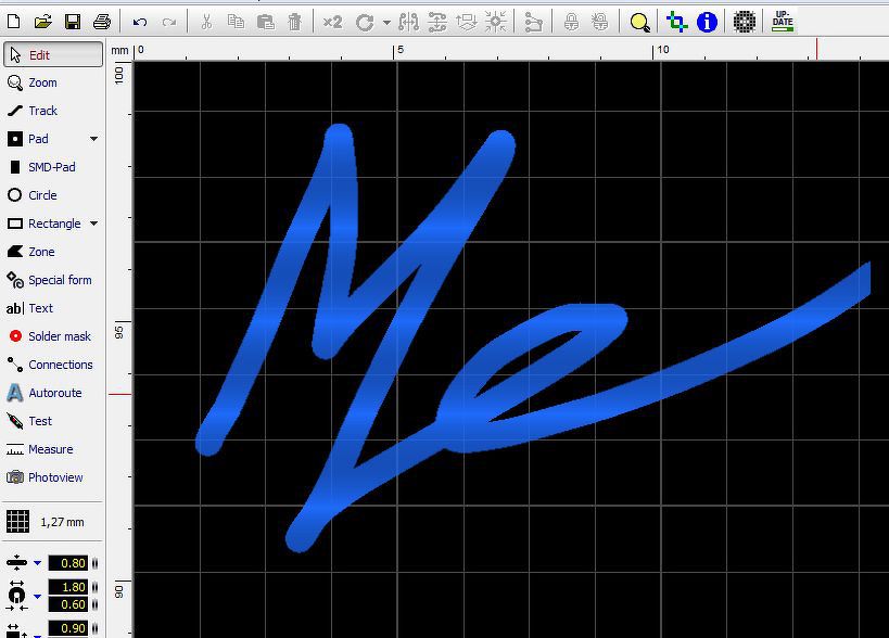 Pár napja szenvedek azzal, hogy az aláírásom rá varázsoljam a tervezett panelre. Egy módszerrel már sikerült, amit Vicsys publikált a youtube-on, de mivel az kézzel készült nem a legszebb. Ezért gondoltam, hogy megpróbálom valahogy máshogy is de nem jön össze! Az aláírásom meg van .png és .svg kijterjesztéssel. A gond az, hogy átalakítva gerber fájllá ha beimportálom, akkor csak a felirat körvonala jelenik meg nem pedig kitöltve az egész. Tudnátok segíteni nekem? Mellékletben csatolom, hogy hogyan néz ki az aláírás és hogyan, amikor importálom gerber fájlként. Előre is köszönöm!