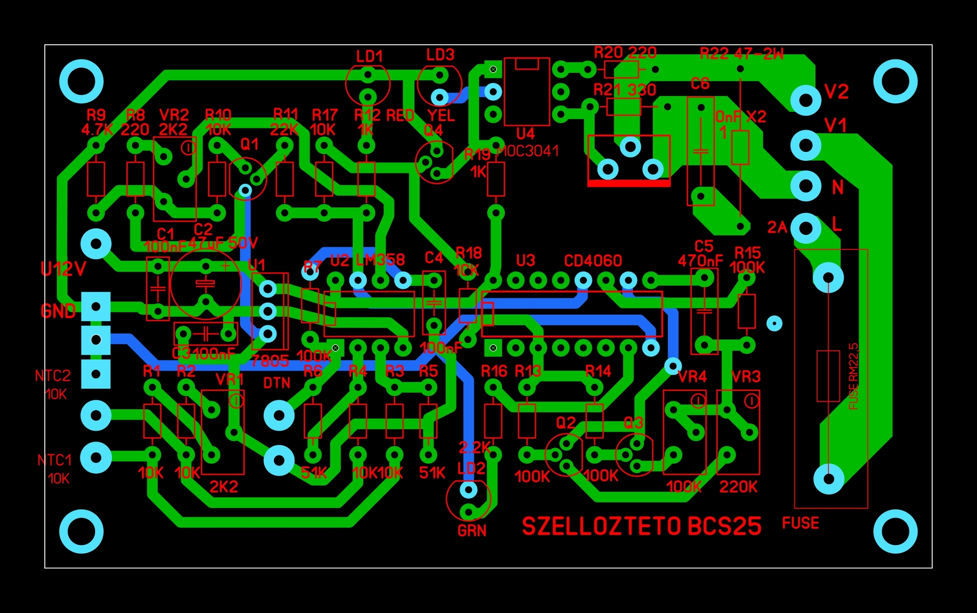 És ha már ennyire meglódult ez a topic, akkor akár az sem elvetendő, hogy az opto két oldala közé egy bemarást tenni valamint C5 R15 és a 230 V-os alkatrészek közé is. Így meglesz a megfelelő szigetelési távolság + biztonság.