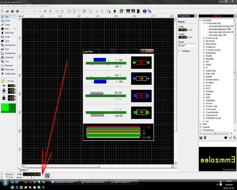 A felső oldal vonalai a kékek (smd is, és az alsó oldal furatszerelt alkatrészei is.) Az alul elhelyezkedő alkatrészek sárgák. Nem tudom mennyire vagyok érthető. Van itt olyan topic ahol bemutatják tövéről hegyére, és még videó is van.