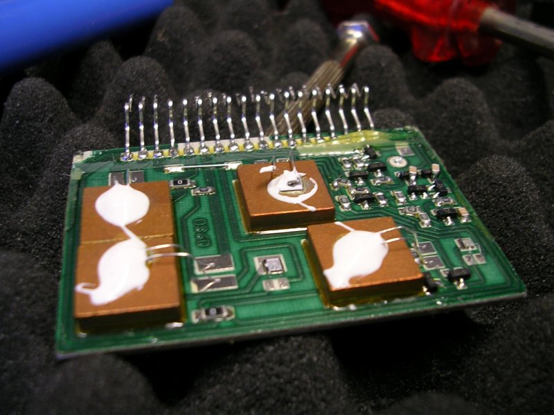 Íme a 3 fő kép Hát én a 423-as képen elszörnyülködtem... Ilyet,hogy ráforrasztják a tranyó tetején keresztül az ellenállást/kondit....Persze lehet nem baj...csak nekem szokatlan. Amúgy a kérdéses tranyók a 20-as képen egyértelműen látszik a jobb felső...ami nem látszik az a bal felső...az valójában kifújt a ragasztó alatt...tehát elvált...