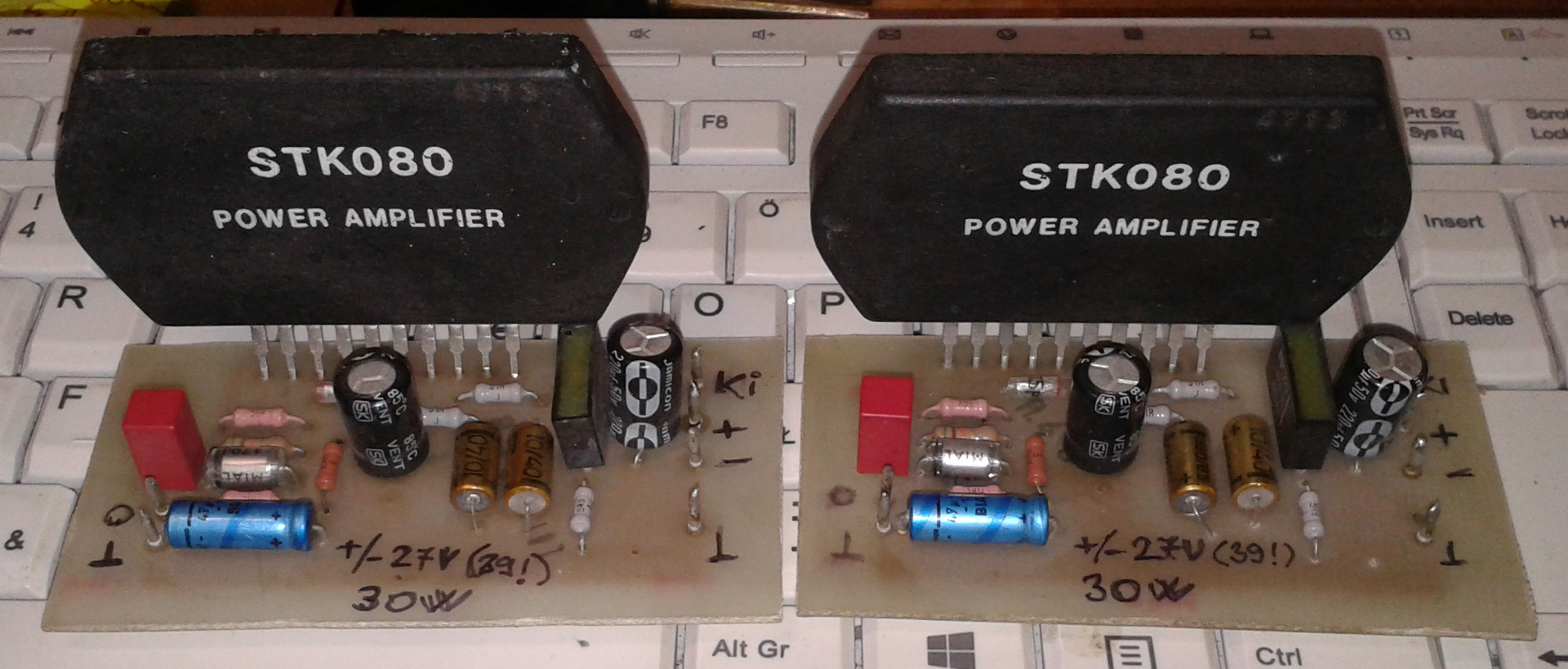 JVC erősítőt javítok. STK0040 volt benne, már cserélt és zárlatos. Kíváncsi tipus vagyok, bicskával szétszedtem és olyan panel van benne mint a neten is több helyen látható (013N). Csakhogy ez nem komplementer mint az STK0040-nek kellene lenni hanem kvázi komplementer két egyforma NPN végtranzisztorral. 99%-ban STK0039. Végül is működik és kompatibilis de azért ez egy kicsit átverés. Amit most vettem még nem szedtem szét, de biztos, hogy ez is a kvázi .
