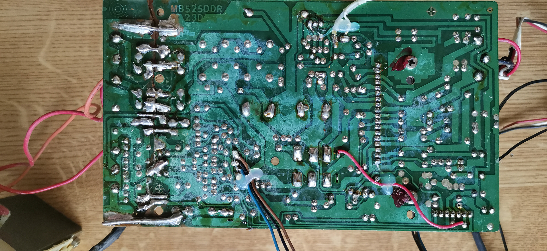 1. Miért-nem smd kondit használt ha már egyszer utólag kellett ráforrasztani egy másik alkatrészre. 2. Az egyik kondi negativ erre a másik arra áll ha azt feltételezzük hogy a két meghalytó rész szimetrikus. Akkor ez hiba. 3. A kondik közel vannak a bordához. De szerintem az első pontban leírtakra gondoltál.