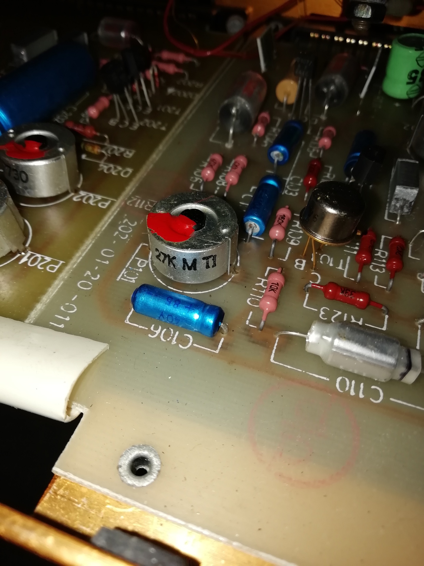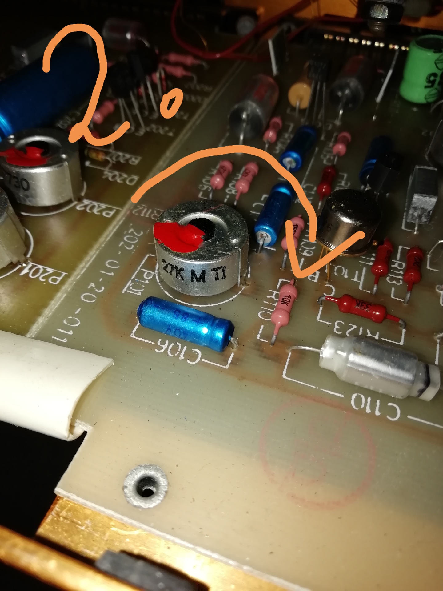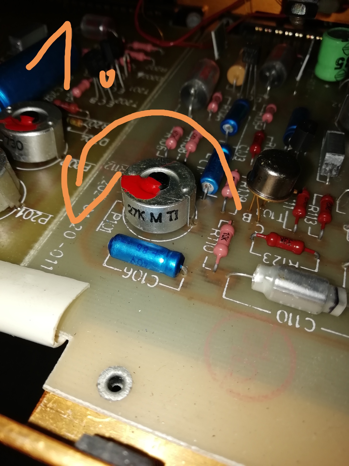 Az óramutató járásával egyezően kell tekerni, hogy érzékenyebb legyen. A rajz szerint dc szempontból le van választva, ezért elrontani nem lehet. Tehát úgy tekerd, mintha az erősítőt akarnád hangosabbra venni. Mivel le van festve, így egy kicsit nehezebben indul meg, de utána pontosan vissza lehet állítani, mert a festék adja a pontos pozíciót.