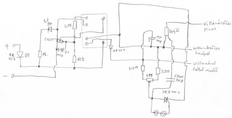 Hali már vagy 2szer feltöltöttem a 12 voltos strobiról egy kapcsit, működik is! Tudod aki keres az talál. Nem nehéz a szerkezetet megcsinálni, állítható a villogási sebessége, és egy sima mezei trafó kell hozzá (2*12v)