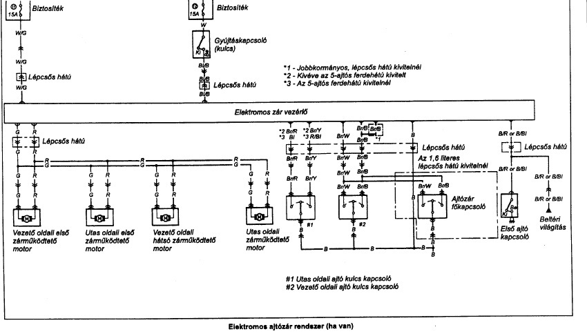 Van egy '99-es Sedan GLX-em gyári elektromos központi zár rendszerrel. Vettem hozzá egy vezeték nélküli vezérlőt amit szeretnék a vezérlőre rákötni. A vezérlő úgy működik, hogy két öt eres és 2 két eres motort kezel, de én a nyitó/záró jelet szeretném a gyári vezérlő gomb lábaira rákötni. Feltéve ha ez lehetséges. Ha nem, akkor a kimenő kábeleket kötném rá a gyári korbácsra. Ha nincs más, attól nem zárkózom el, hogy kiegészítő áramkört forrasszak, de nem akarom szétkaszabolni a gyári kábelkorbácsot. A rádiós elektronika 5 eres része két, motorhoz való tápkábelt (polaritásos) és két vezérlőjelkábelt (polaritásos), és egy földet tartalmaz (úgy sejtem a vezérlőjelekhez) Előre is köszönöm a segítséget!