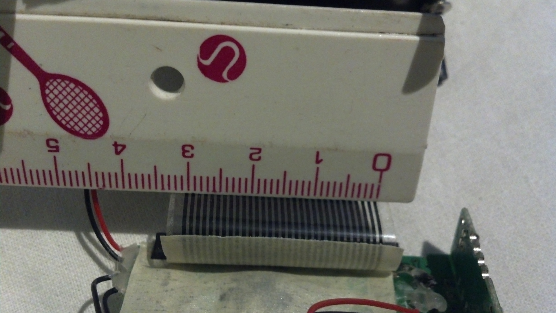 Azt a szalagkábelt szeretném megcsinálni ami a képen van. Az a csíkos amin a kefe csúszik oda-vissza. A szétszereléshez le kellett szedni a tubusról és ennek következtében elszakadoztak azok a nagyon vékony vezető sávok.