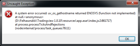 TradingView asztali verzióját futtatom, vagyis futtatnám. Előző verzió tökéletesen ment, aztán jött egy update, és frissítés után indításnál az alábbi hibaüzenet fogad, és a program nem indul. A rendszer W7 64bit. Nem értem, mi baja szerintetek? Ui.: A hivatalos oldalon nem találok egy nyamvadt kapcsolattartási e-mailt (vagy átsiklok felette?), hogy onnan kérjek segítséget.