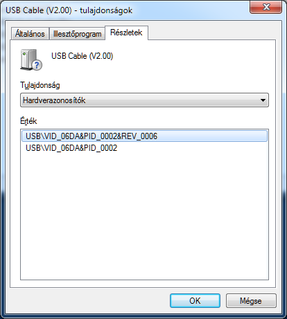 Keresek a képen látható hardverhez USB\VID_06DA&PID_0002&REV_0006 drivert.
