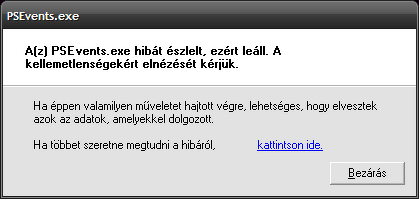 Folyamat összeomlikA képen látható ablak időnként megjelenik, hogy a "PSEvents.exe" program összeomlott. A folyamat a "Panda Free Antivirus"-hoz tartozik, a rendszer Windows XP Professional. Van, hogy hosszabb ideig semmi és van, hogy ~1 órán belül ismét megjelenik (kiszámíthatatlan) ‒ az a zavaró, hogy a többi ablak fölött jelenik meg.A gép offline a tévé kártyám kezelésére lett befogva. Javítható ez valahogyan? (A számítógépet használtan kaptam egy ismerőstől, hogy nekik már nem kell, nem én telepítettem.)