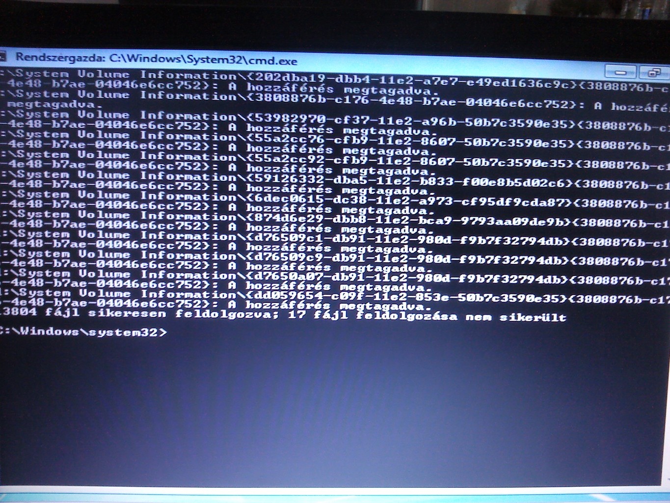 Ugye rendszergazdaként futattad a CMDt?