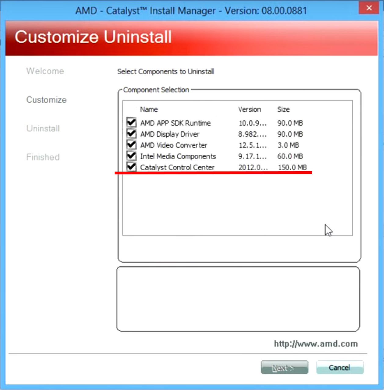 Mint előzőekben említettem a beállításokhoz a "Catalyst Control Center" programmal lehet hozzáférni, ami nálad nincs telepítve (a log fájlod szerint). Ehez viszont a dotNET valamelyík verziója is szükséges, ami Xp rendszerről lévén szó, szintén nincs telepítve.