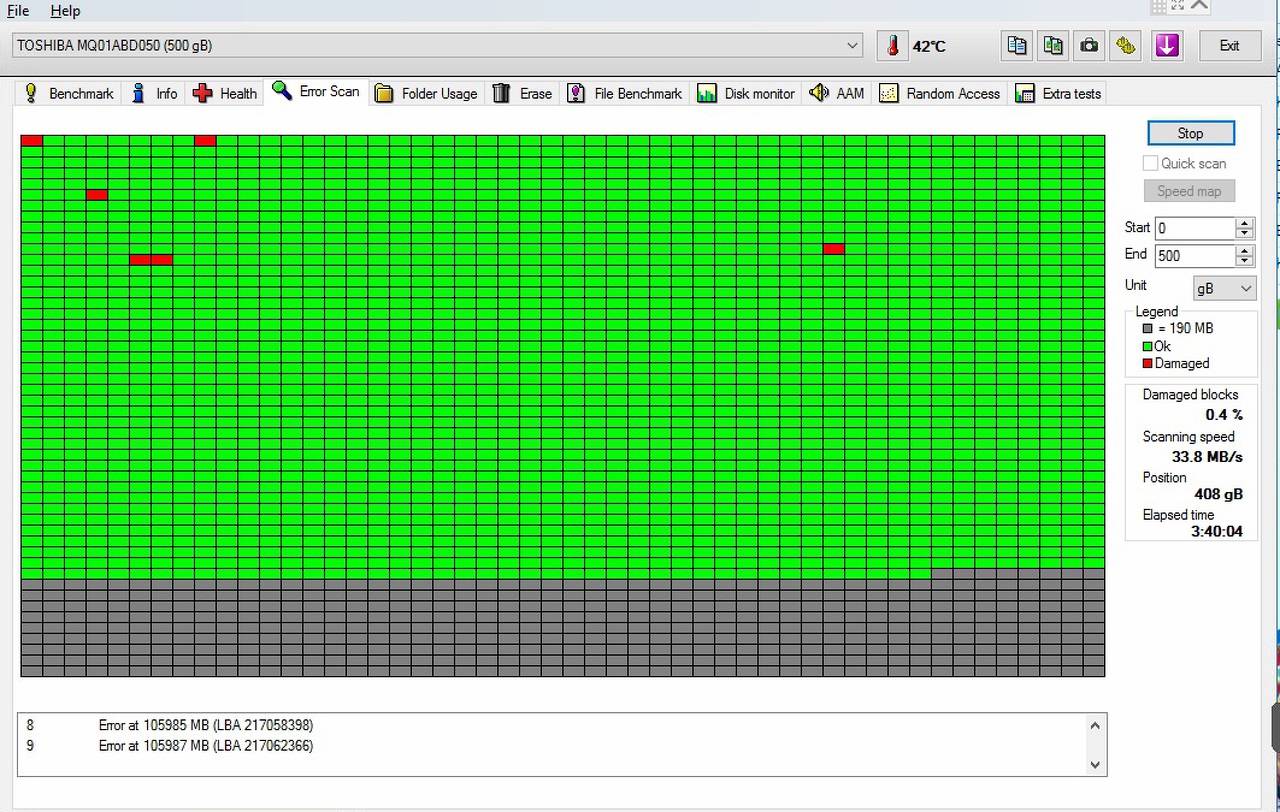 Még annyit megpróbálhatsz, hogy teljesen letisztítod a merevlemezt bármilyen particionáló programmal, bár sok jóra ne számíts. A HD tune proginak az Erase funkcója is valószínű képes a tisztításra.